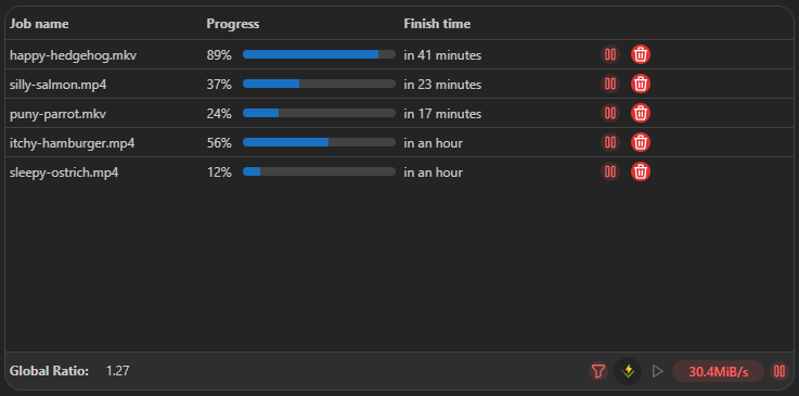 This widget displays a list of torrents or usenet-articles that are currently being downloaded, along with their progress and other relevant information.